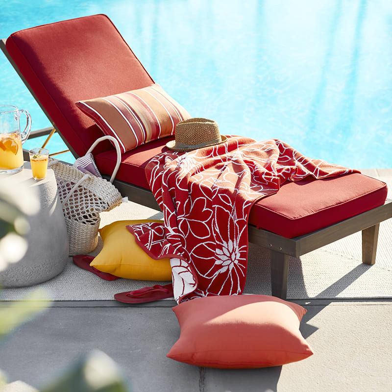 Create a custom Sunbrella chaise cushion to fit your outdoor lounge chair exactly as you need it.